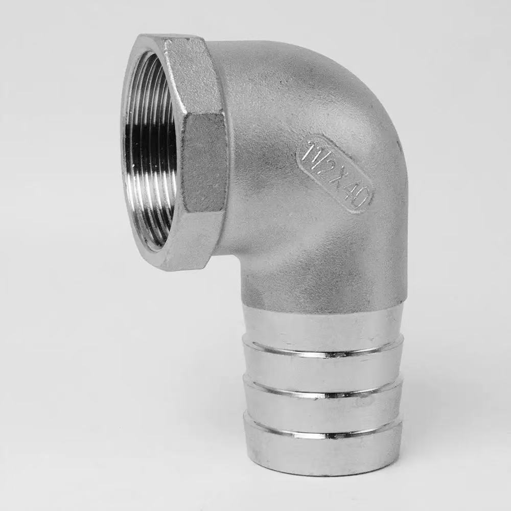ข้อศอกข้อศอกหญิง 90 องศา:มีเกลียวตัวเมียที่ปลายด้านหนึ่งและข้อต่อท่อแบบมีหนามที่ปลายอีกด้าน ออกแบบมาเพื่อเชื่อมต่อกับส่วนประกอบเกลียวตัวผู้